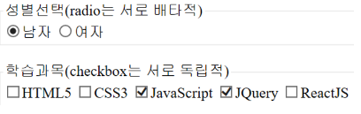 <legend>์ฑ๋ณ์ ํ(radio๋ ์๋ก ๋ฐฐํ์ )</legend>